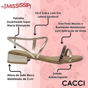 Com a Sandália Feminina Salto Baixo Mississipi, você estará pronta para arrasar com muito conforto e elegância. Não perca essa chance de adicionar essa peça única ao seu guarda-roupa!