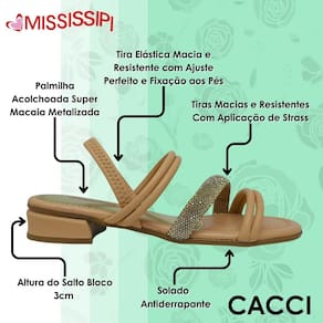 Com a Sandália Mississipi, você combina brilho, conforto e versatilidade para arrasar em qualquer ocasião.