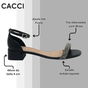 A Sandália Salto Baixo Cacci é a combinação perfeita de sofisticação e praticidade. Com tiras adornadas em strass, ela traz um brilho delicado que valoriza qualquer look, seja para o dia a dia ou ocasiões especiais.