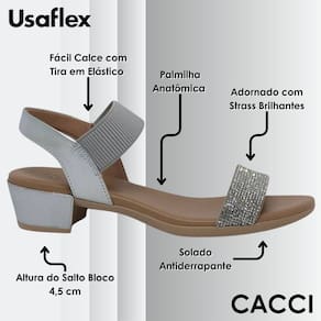 A Sandália Salto Baixo Usaflex é o equilíbrio perfeito entre conforto e estilo. Com um design atemporal e delicado, é ideal para acompanhar você em diversos benefícios, trazendo elegância e praticidade para o dia a dia.