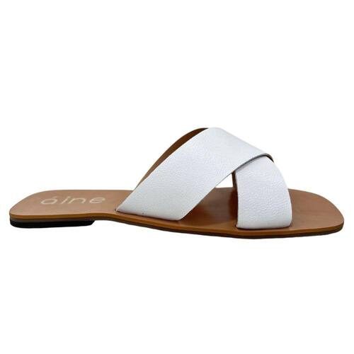 SANDALIA RASTEIRINHA TIRAS DE COURO CRUZADAS EM X LUDI BRANCO - AINE STORE