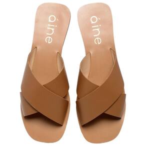 SANDALIA RASTEIRINHA TIRAS DE COURO CRUZADAS EM X LUDI CARAMELO - AINE STORE