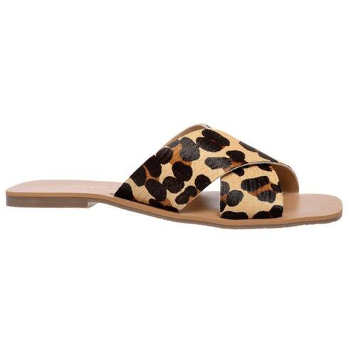 SANDALIA RASTEIRINHA TIRAS DE COURO CRUZADAS EM X LUDI ONÇA - AINE STORE