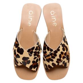 Sandalia Feminina Salto Baixo Rasteirinha Aine Store Ludi Onça - 41 - Marrom