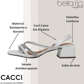 O salto baixo proporciona estabilidade e permite que você passe o dia todo com tranquilidade, seja no trabalho, em eventos sociais ou em momentos casuais. O modelo apresenta uma combinação harmoniosa de tiras delicadas, conferindo um toque de feminilidade ao calçado.