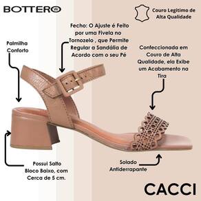 Essa sandália Bottero foi criada para quem valoriza conforto, praticidade e estilo no dia a dia. Seu salto bloco baixo de aproximadamente 5 cm garante estabilidade e leveza ao caminhar, ideal para acompanhar você em longos períodos de uso sem abrir mão da elegância. A palmilha macia proporciona sensação de aconchego, tornando cada passo ainda mais agradável.