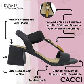 A Sandália Feminina Modare é confeccionada em material napa, sendo alta qualidade e durabilidade. Seu cabedal é composto por uma tira lisa acima dos dedos, uma tira com pedrarias e uma tira elástica. Conta com palmilha acolchoada confortável. A sandália se acomoda bem aos pés garantindo um calce perfeito, é perfeita tanto para o trabalho quanto para os passeios de fim de semana. Seu salto é em bloco e possui 7,0 cm de altura, dando maior sustentação em cada passo. Seu solado é fabricado em borracha antiderrapante.