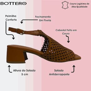 O salto médio blocado oferece a altura ideal para uso diário, mantendo o conforto em cada passo. A palmilha macia e o forro interno reforçam a sensação de bem-estar, mesmo durante longos períodos de uso. Um modelo para quem quer unir charme, conforto e estilo em um só produto.
