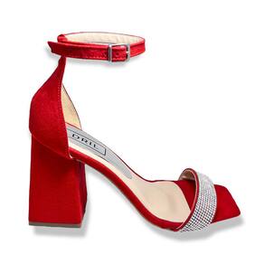 O salto bloco grosso garante estabilidade e conforto durante todo o dia, enquanto as tiras de strass conferem um brilho único e sofisticado