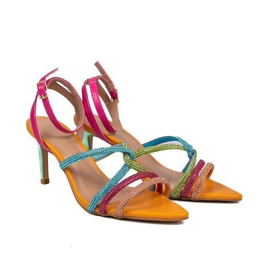 Modelo : Sandália Strass Colorida Bico Folha Salto Fino