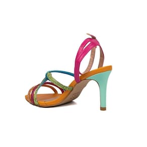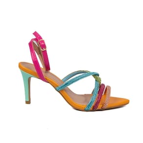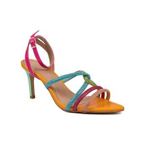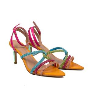 Modelo : Sandália Strass Colorida Bico Folha Salto Fino