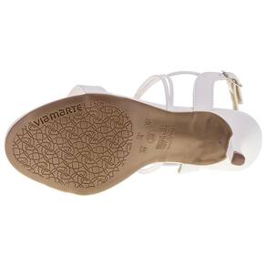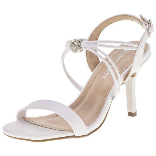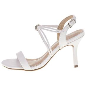 A Sandália Feminina Salto Fino Via Marte é confeccionada em Napa de alta qualidade com acabamento em costura, detalhes de strass, fechamento por fivela de ajuste, palmilha em PU e solado em borracha antiderrapante com salto de dez centímetros. Ean: 7890562674053