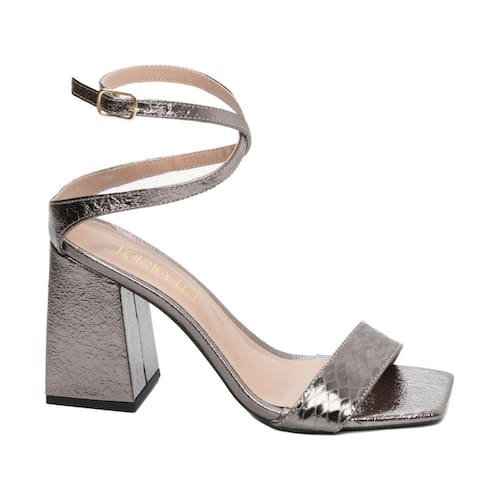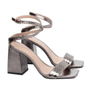 SANDáLIA FEMININA SALTO GROSSO METAL PRATA VELHO PRATA (322A)