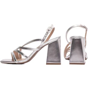 SANDáLIA FEMININA SALTO GROSSO METALIZADO PRATA (260C)