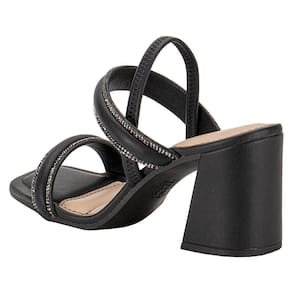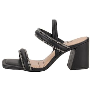 Sandália Feminina Salto Grosso Dakota Y8361 com salto grosso de 8,5 cm, estilo salto alto, confeccionada em Napa com detalhes em Strass. Possui acabamento colado e costurado, palmilha em PU e sola em borracha. A tira em elastano envolve o calcanhar, garantindo um calce ajustável e confortável.