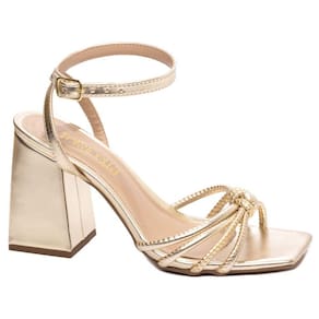 SANDáLIA FEMININA SALTO GROSSO METAL OURO LIGHT AMARELO (104B)