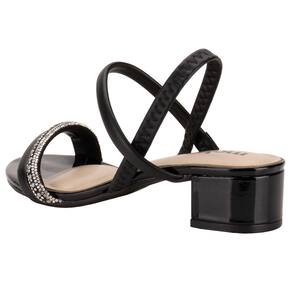 A Sandália Feminina Salto Grosso Moleca é confeccionada em Napa Turim de alta qualidade com detalhes em strass, acabamento em costura, palmilha em PU e solado em borracha com salto baixo de quatro centímetros.