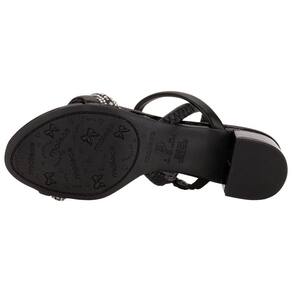 A Sandália Feminina Salto Grosso Moleca é confeccionada em Napa Turim de alta qualidade com detalhes em strass, acabamento em costura, palmilha em PU e solado em borracha com salto baixo de quatro centímetros.