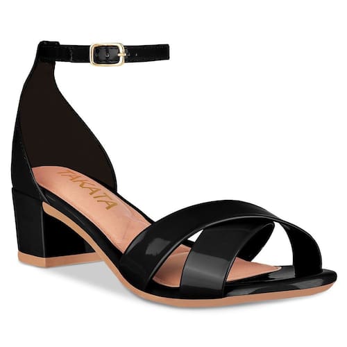Sandália Feminina Salto Grosso Tiras Cruzadas Verniz - 37 - Preto