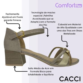 Pensada para quem busca um calçado elegante e ao mesmo tempo confortável, esta sandália Comfortflex une visual refinado, estrutura firme e tecnologia de maciez avançada. Seu design equilibrado proporciona versatilidade para diferentes estilos, enquanto a palmilha com suavidade extra mantém o bem-estar ao longo do dia. O salto bloco oferece estabilidade ao caminhar e o solado flexível permite movimentos naturais, garantindo um uso agradável mesmo durante longos períodos. Um modelo perfeito para quem valoriza estilo, conforto e praticidade em qualquer momento.