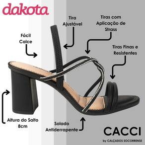 A Sandália Dakota de Salto Bloco é a escolha perfeita para adicionar um toque de sofisticação ao seu visual. Com seu salto bloco alto de 8cm, oferece conforto ao mesmo tempo em que eleva seu estilo. As tiras finas que envolvem o pé garantem um visual delicado, tornando-a uma opção versátil para o dia a dia, momentos de lazer ou até mesmo para uma noite na balada. De calce fácil por não ter fechamentos, o modelo conta com uma tira maleável que envolve o calcanhar. Além disso, as tiras repletas de brilhos sobre o peito do pé adicionam um toque atemporal que complementa qualquer look, tornando esta sandália uma escolha incrível para quem gosta de estar na moda.