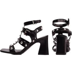 Material: Napa Preto Enfeite: Fivela de Ajuste na Cor Prata e Apliques na Cor Prata Forro: Napa na cor Preto Palmilha: 8 mm de Espessura, Espuma em EVA, Revestida em Napa Preto e Taloneira Napa Preto Salto: Grosso com 7,5 cm de Altura Revestido em Napa Preto Solado de TR com antiderrapante na cor Preto.