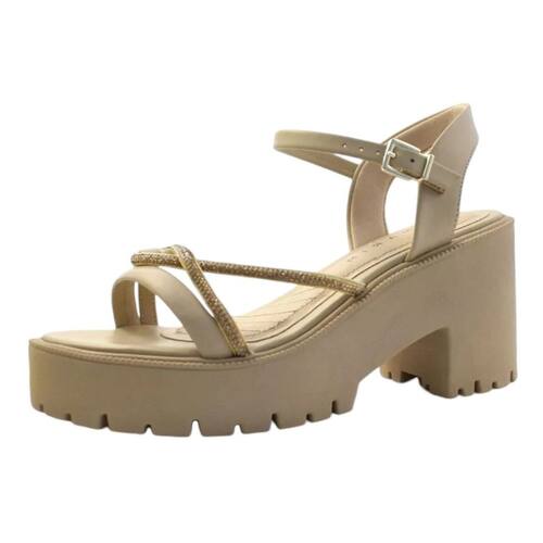 Detalhes em Strass Elegantes: Os detalhes em strass adicionam brilho e charme à sandália, tornando-a ideal tanto para produções mais arrumadas quanto para ocasiões casuais.