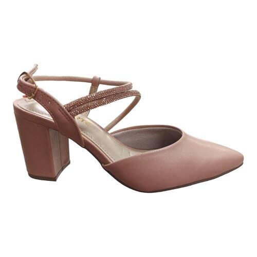 Sandalia Feminina Salto Quadrado Bico Fino Via Marte 028-006 - 38 - Bege médio