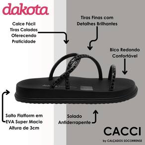 A Sandália Calce Fácil Dakota Flatform com Brilhos conta com sola anatômica de EVA super Macia, proporcionando uma experiência leve e suave para seus pés, tornando-a perfeita para o dia a dia ou momentos de lazer. O toque de glamour fica por conta das tiras revestidas de brilhos que envolvem delicadamente o pé, elevando a sofisticação dos seus looks. Feita com material sintético premium de alta qualidade, esta sandália não apenas é estilosa, mas também é durável e resistente, garantindo que você esteja sempre na moda, independente da ocasião.