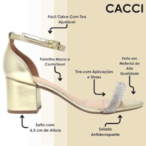 Apresentamos a você esta linda Sandália de Salto Cacci, com detalhes que farão você se encantar! Feita em materiais de alta qualidade que proporcionam ótimas experiências para você!