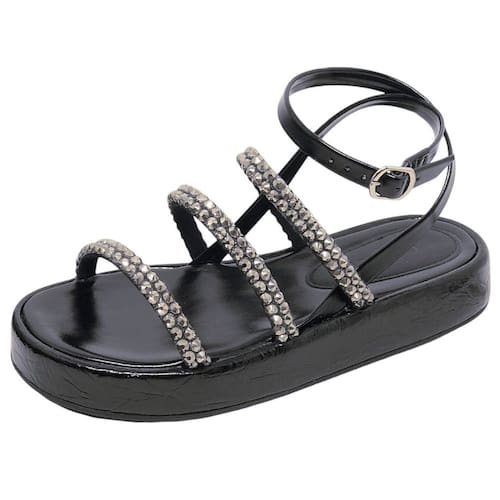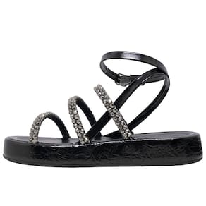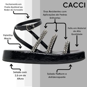 Sandália Feminina Tiras Brilho Conforto Flatform Cacci - Preto - 39