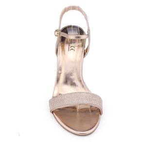 Sandália Vivaice 405293 é um modelo elegante, com salto grosso e apresenta sustentação para calçar confortavelmente em festas, casamentos ou eventos sociais. Seu cabedal é fabricado em material sintético e acabamento liso, tem como características bico arredondado e tira única em material brilhante com 2,5cm de largura no peito do pé, o fechamento é por tira fina no tornozelo com 5 furos para o ajuste e fivela dourada, seu calcanhar é aberto e a palmilha é fixa em material sintético acolchoado tornando o sapato confortável. O seu salto bloco como detalhe é revestido em material brilhante, tem 7,5cm de altura, o solado apresenta frisos para maior segurança.