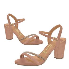 Sandalia Feminina Vizzano Salto Médio Strass 6262.1009 - 36 - Bege médio