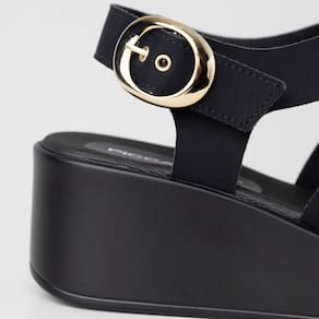 Salto anabela médio que proporciona estabilidade ao caminhar