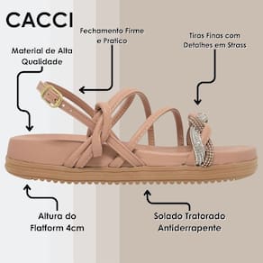Experimente o equilíbrio perfeito entre estilo e conforto com nossa sandália flatform Cacci, uma combinação perfeita entre moda e conforto. Com um design moderno, ela oferece uma opção versátil para quem busca praticidade sem perder o charme.