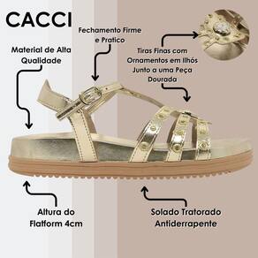 Descubra o equilíbrio perfeito entre estilo e conforto com nossa sandália flatform Cacci, uma combinação perfeita entre moda e conforto. Com um design moderno, ela oferece uma opção versátil para quem busca praticidade sem perder o charme.