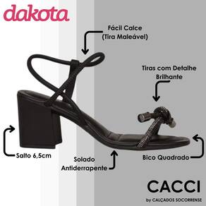 A Sandália Dakota de Salto Bloco Preta com Brilhos é uma escolha elegante e glamorosa para diversas ocasiões. Com um salto bloco alto de 6,5cm, essa sandália oferece um toque de sofisticação e feminilidade ao seu visual. As tiras finas com brilhos na parte frontal proporcionam um charme especial, garantindo glamour às suas produções e tornando-a perfeita para momentos especiais.