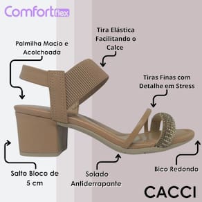 A Sandália Feminina Salto Bloco Caqui Comfortflex é a escolha perfeita para quem deseja aliar conforto, elegância e versatilidade em um único modelo. Com um visual moderno e sofisticado, ela se destaca pelos detalhes em strass que acrescentam um brilho sutil e feminino, tornando o calçado ideal tanto para produções do dia a dia quanto para ocasiões especiais. Confeccionada em material sintético de alta qualidade, essa sandália possui tiras com acabamento elástico que proporcionam ajuste prático e seguro aos pés, facilitando o calce e garantindo conforto prolongado. O salto bloco médio de 5 cm oferece estabilidade e leveza ao caminhar, enquanto o bico arredondado completa o visual com delicadeza e harmonia. Seja para um look mais casual ou para compor produções mais elegantes, essa sandália Comfortflex entrega o equilíbrio ideal entre estilo e bem-estar, acompanhando você com charme em todos os momentos.