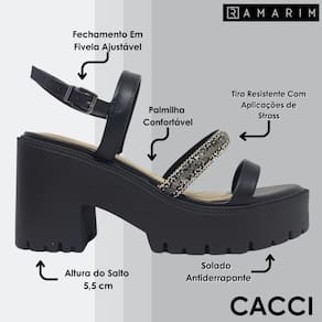 Seu salto médio de 5,5 cm é perfeito para quem busca a combinação entre conforto e um toque de atitude, sem perder a praticidade. O bico arredondado oferece um ajuste confortável, tornando esse modelo ideal para o dia a dia, mas também a escolha certa para ocasiões mais especiais. Aposte nas sandálias tratoradas e eleve seu visual a um novo nível de estilo e confiança, seja em um look casual, festivo ou até mesmo profissional.