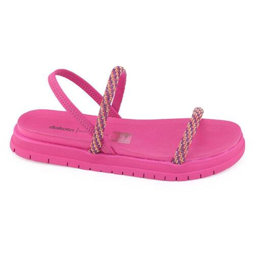 Sandália feminina Dakota Y6891 é moderna e confortável, fabricada em material sintético, apresenta toda a qualidade da marca. Esta sandália é um modelo Flat com todo o conforto de uma Papete destaca-se em looks para passeios e também tem conforto para o dia a dia. Seu cabedal tem como destaque tiras no peito do pé, sendo duas decoradas com strass trazendo brilho ao modelo. O calcanhar neste modelo é aberto e o calçe é fácil, pois basta encaixar o pé, sua tira do tornozelo é elástica permitindo inclusive que a sandália seja usada como um tamanco, a palmilha fixa é almofadada, com a Logo da marca. O solado possui 2,5cm de altura, solado com frisos para maior segurança.