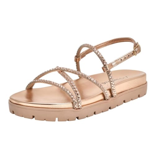 A sandália rasteira papete flatform é um modelo que combina estilo e conforto. Seu solado flatform é revestido por um tramado de tiras delicadas com enfeites em strass, e a palmilha anatômica garante um caminhar confortável. Os dedos e o peito do pé são envolvidos por tiras revestidas de strass que se cruzam sobre o pé, enquanto o calcanhar é envolvido por tiras com fechamento prático na lateral. Esta sandália é perfeita para adicionar um toque de elegância a qualquer look.