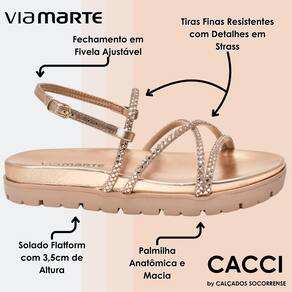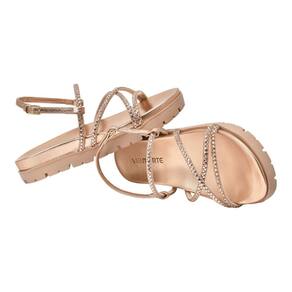 A sandália rasteira papete flatform é um modelo que combina estilo e conforto. Seu solado flatform é revestido por um tramado de tiras delicadas com enfeites em strass, e a palmilha anatômica garante um caminhar confortável. Os dedos e o peito do pé são envolvidos por tiras revestidas de strass que se cruzam sobre o pé, enquanto o calcanhar é envolvido por tiras com fechamento prático na lateral. Esta sandália é perfeita para adicionar um toque de elegância a qualquer look.