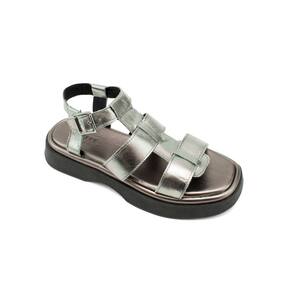 Sandália Flatform Couro Feminina Iris Inox - 38 - Prata