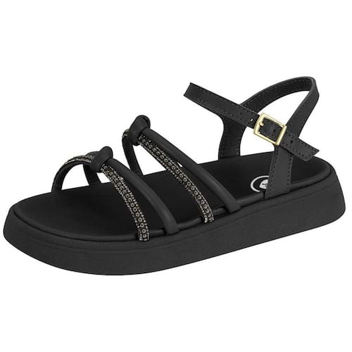 As tiras finas, delicadamente adornadas com strass, elevam o visual da sandália, permitindo que as pequenas brilhem em qualquer evento.