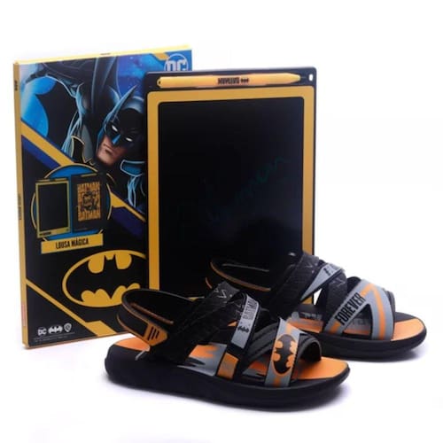 Sandália Grendene Batman Creative Preto Amarelo Cinza Ajustável Lousa Interativa 336543