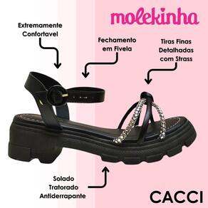 Sandália Infantil Feminina Conforto Brilhante Molekinha - 28 - Preto