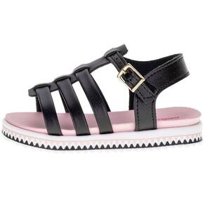 A Sandália Infantil Feminina Molekinha já tem os corações das pequenas. Confeccionada em Napa turim, com acabamento em costura e fechamento por fivela no tornozelo. A palmilha em PU acomoda os pés perfeitamente e o solado em borracha garante segurança em cada passo.