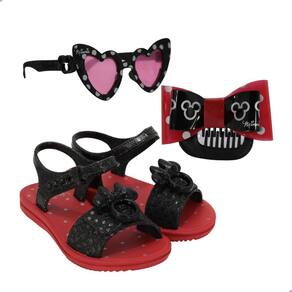 Sandália Infantil Grendene Kids Minnie Dress Lik Com Óculos Vermelho e Preto - 28 - Vermelho