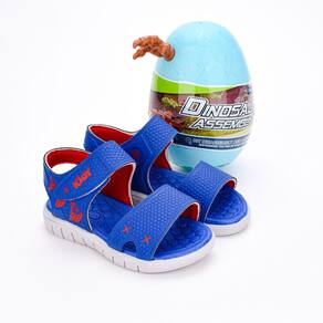 Com um design moderno e cores vibrantes, essa sandália anatômica proporciona um ajuste perfeito aos pés. O fechamento em fita aderente torna o calçar mais prático e rápido, enquanto a palmilha antibacteriana mantém os pés frescos e protegidos. E não podemos esquecer da segurança para os pequenos, com o solado antiderrapante oferecendo maior estabilidade em todas as superfícies. Para tornar a experiência ainda mais divertida, cada sandália vem acompanhada de um ovo contendo um dinossauro surpresa colecionável, que vai encantar os pequenos aventureiros.