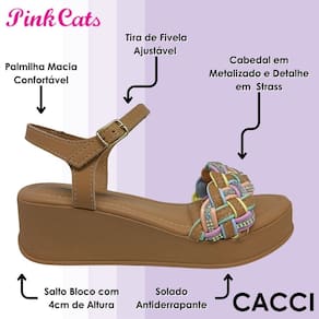 A Sandália Infantil Menina Anabela Pink Cats é puro charme e conforto!